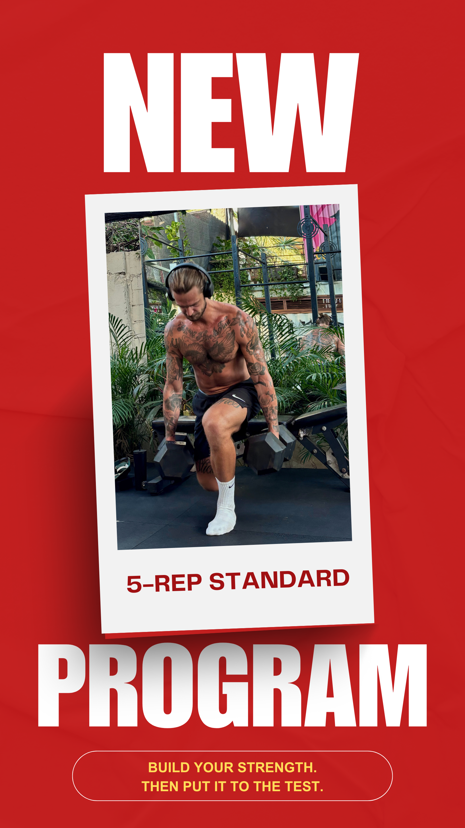 This is a comprehensive 8-week program designed to build + test your baseline strength across 8 key metrics, with 4 full-body sessions per week. Sessions are delivered via the TrainHeroic app, with video references and detailed instruction. If you are unable to successfully complete the 5-Rep Standard Test, this is the program for you.